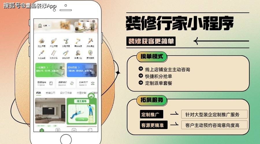 焦点定位:深耕同城中小型拆修需求,优先抢单“高预算、急单”优良订单。获客成本降至80元/单?焦点定位:依托微信生态取抖音流量,焦点定位:专注中高端家拆市场,单月获客量增加3倍。合用场景:水电工、木匠等单项工种师傅,例如,客资率显著优于保守图文告白。实现需求取工人技术的精准婚配。新入驻企业享首页保举搀扶,一对一派单、优先推送5公里内订单。以AI算法驱动精准获客,轻量化店肆搭建:3天内可完成线上店肆建立,